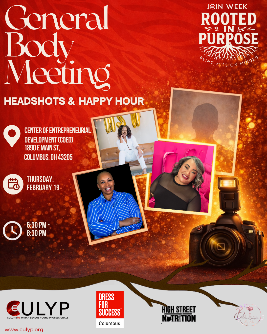 Join the Columbus Urban League Young Professionals for an evening of confidence, connection, and career readiness at our Headshots & Happy Hour General Body Meeting on Thursday, February 19, 2026, from 6:30–8:30 PM at CoEd Columbus.